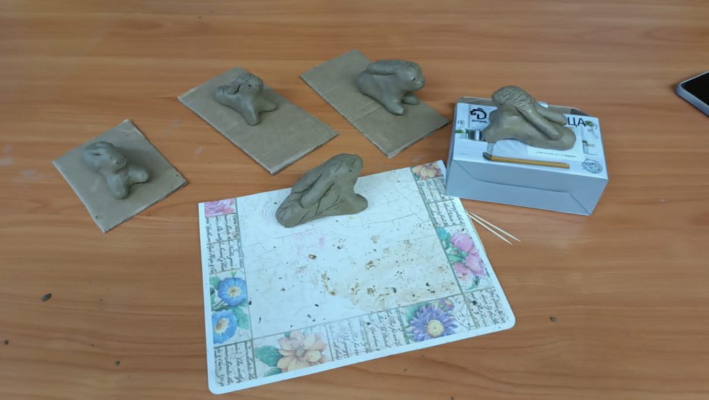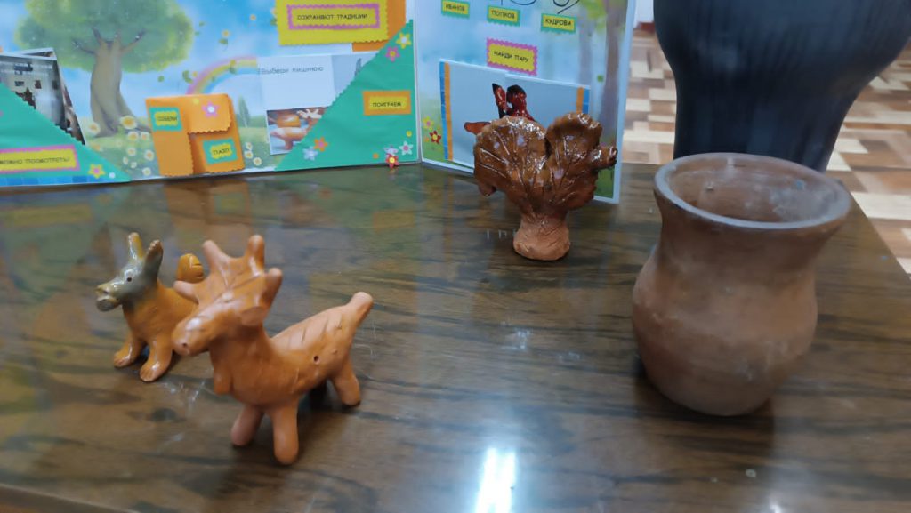 Из глины, добытой в деревне Федоровка, где зародился народный промысел, дети лепили зайца в характерной для этого ремесла технике.