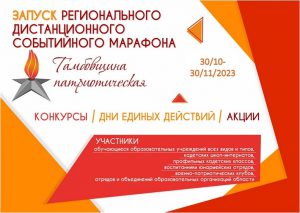 Региональный ресурсный центр патриотического воспитания информирует о запуске дистанционного событийного марафона «Тамбовщина патриотическая» с 30 октября по 30 ноября 2023 года.
