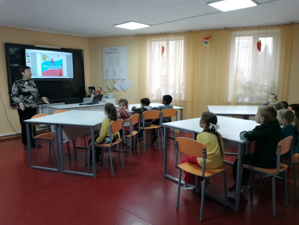 В Токаревском районном Доме детского творчества совместно с группой пришкольного кратковременного пребывания Токаревской СОШ N2 прошло мероприятие, посвященное Дню народного единства. Это праздник патриотизма, взаимопомощи и единения всех российских народов. Педагог дополнительного образования Невежина С.В. познакомила детей с символикой нашего государства, историей образования праздника, событиями времён 17 века, связанными с этим праздником. Ребята показали своё единение в играх «Лавата», «У оленя дом большой», «Вперед четыре шага», в которых активно и весело поучаствовали. Дошкольники получили заряд бодрости и массу положительных эмоций.