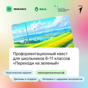Также в рамках Всероссийского квеста «Переходи на зеленый» пройдут Дни единых действий «Встречи с экопрофессиями», с 16 октября до 3 декабря.
