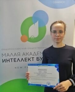От Мичуринского муниципального округа в конференции участвует учащаяся МБОУ ДО «Дом детского творчества», Безверхняя Елена. Она достойно представила свою работу в секции «Социология» и стала Лауреатом II степени.
