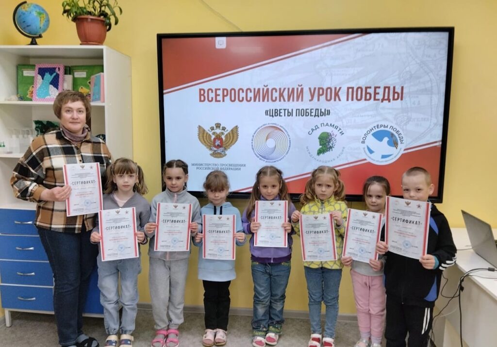 В конце урока все дети получили сертификаты, подтверждающие участие в уроке Победы.