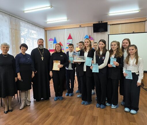 Батюшка поблагодарил юных артистов и их педагогов за прекрасные выступления и вручил всем дипломы и сладкие подарки.