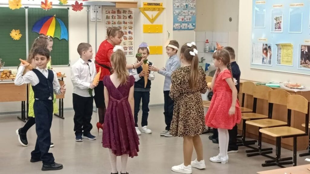 Ребята не остались в долгу. В миниатюре «Польза овощей и фруктов» они поблагодарили Осень за щедрые дары, водили хороводы, исполняли песни, частушки и стихи, отгадывали загадки, играли в игры, проявляя актерское мастерство, сообразительность и ловкость.