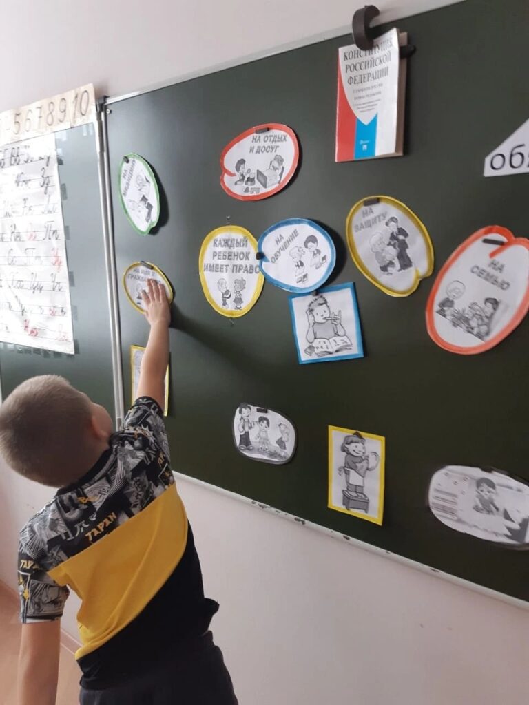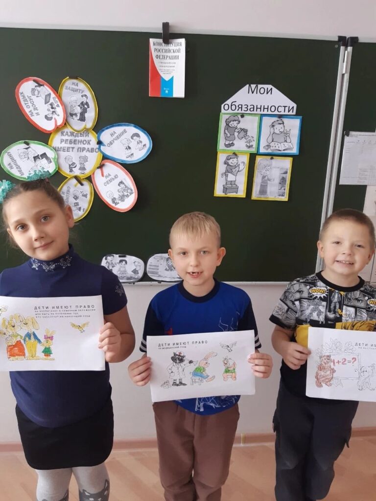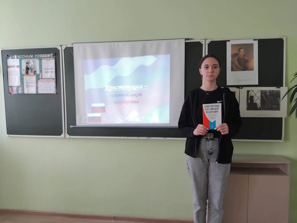 В старших классах был проведено тематическое занятие «Главный Закон нашей страны». Ребята познакомились с историей возникновения символов государства, с кратким содержанием Конституции Российской Федерации; узнали о президенте России и его полномочиях, о субъектах Российской Федерации; вспомнили права и обязанности граждан России и значения государственных символах РФ.