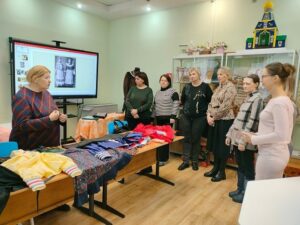 16 декабря 2024 года на занятии по пошиву народной женской одежды Любовь Николаевна Бабахова рассказала слушателям историю возникновения городского костюма «Парочка», познакомила с особенностями кроя и пошива, а педагоги определились с фасоном будущего изделия, сняли необходимые мерки для конструирования костюма, выбрали материалы для украшения и приступили к раскрою юбки.