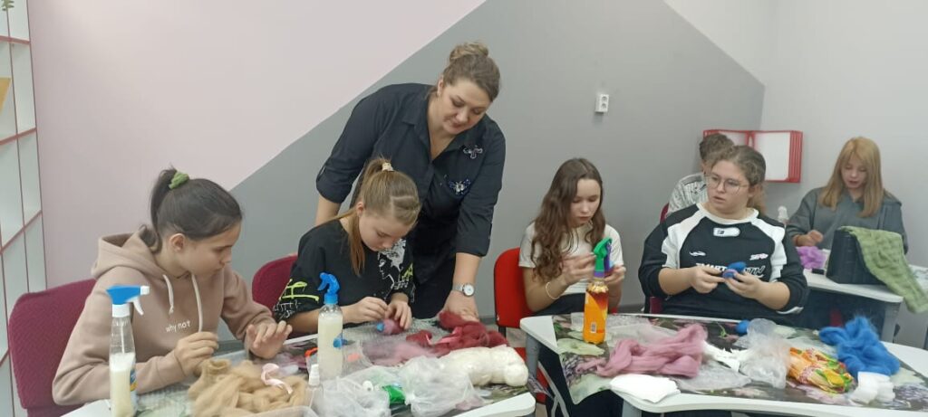 «Сувенирные валеночки» — так назывался мастер-класс по программе «Планета валяния». Ребятам предстояло познакомиться и освоить технику мокрого и сухого валяния.