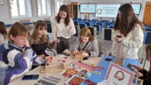 В творческих мастерских дети под руководством опытных мастеров-педагогов продолжили осваивать техники и приёмы работы в различных видах ремесленного творчества: под руководством мастера по вышивке учащиеся продолжили выполнять узоры на сумке-лакомник в технике тамбурный шов; на занятиях бисероплетения продолжили изготовление браслета в технике бисерного ткачества; учащиеся на занятиях по ткачеству завершили работу по изготовлению подвески «Сова» и приступили к изготовлению браслета в технике «жгут»; в технике валяния из шерсти сделали подвеску-кулон; из лоскутов изготовили куклу-скрутку «Подорожница»; в технике ручной лепки из глины изготовили декоративную тарелку.