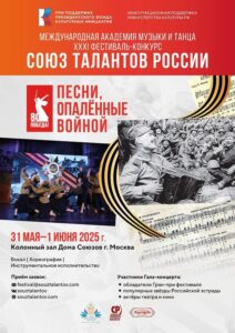 В честь 80-летия Великой Победы и в память о подвиге советского народа и современных героев с 31 мая по 1 июня 2025 года в Москве (Колонный зал Дома союзов) состоится XXXI Международный фестиваль-конкурс «Союз талантов России». Фестиваль объединит солистов и ансамбли разных жанров, отдавая дань уважения героическому прошлому и настоящему.