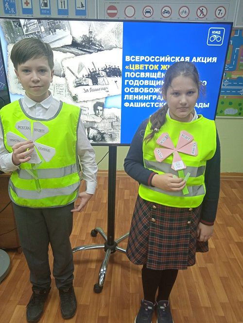 Ребята из отряда ЮИД «Дорожный патруль» присоединились ко Всероссийской акции «Блокадный хлеб» и «Дорога жизни».