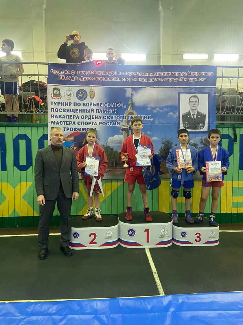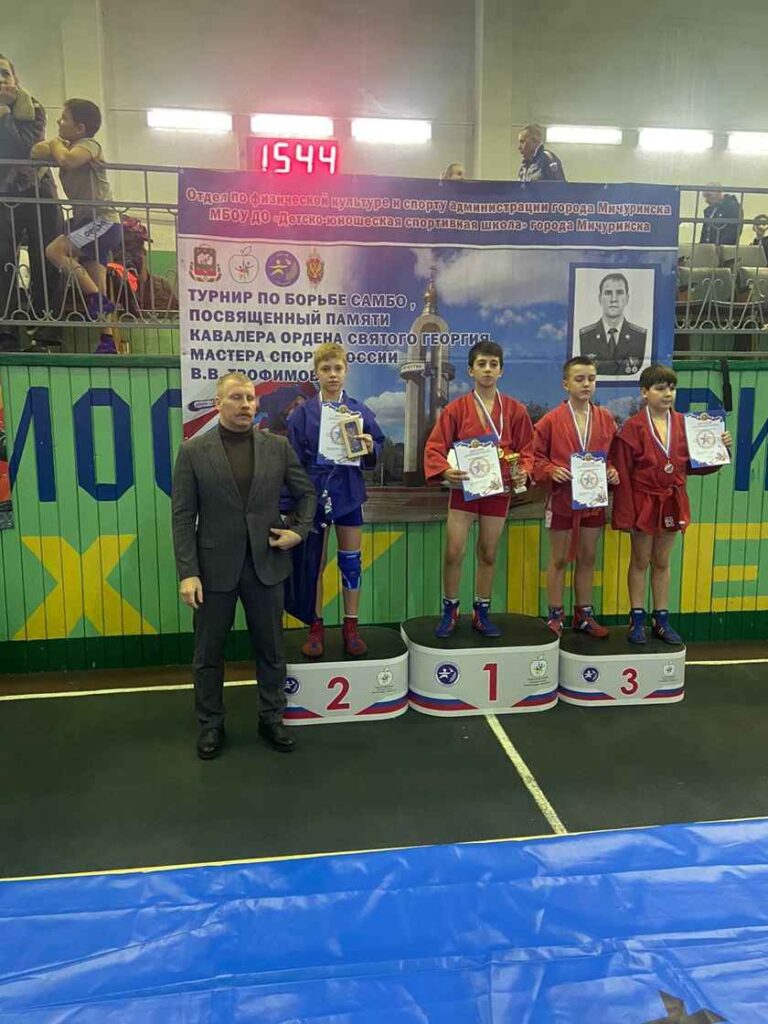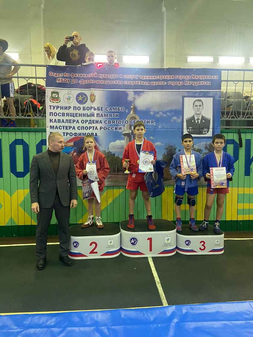 Команда МБУ ДО «Спортивная школа №7» отделения самбо под руководством тренеров-преподавателей А.С.Колодина и К.Н.Сарычева приняла участие в открытом турнире города Мичуринска по самбо среди юношей 2012-2013, 2014-2015 г.р., посвященного памяти кавалера ордена Святого Георгия, мастера спорта России лейтенанта В.В.Трофимова, приуроченные к 80-летию Победы в ВОВ.