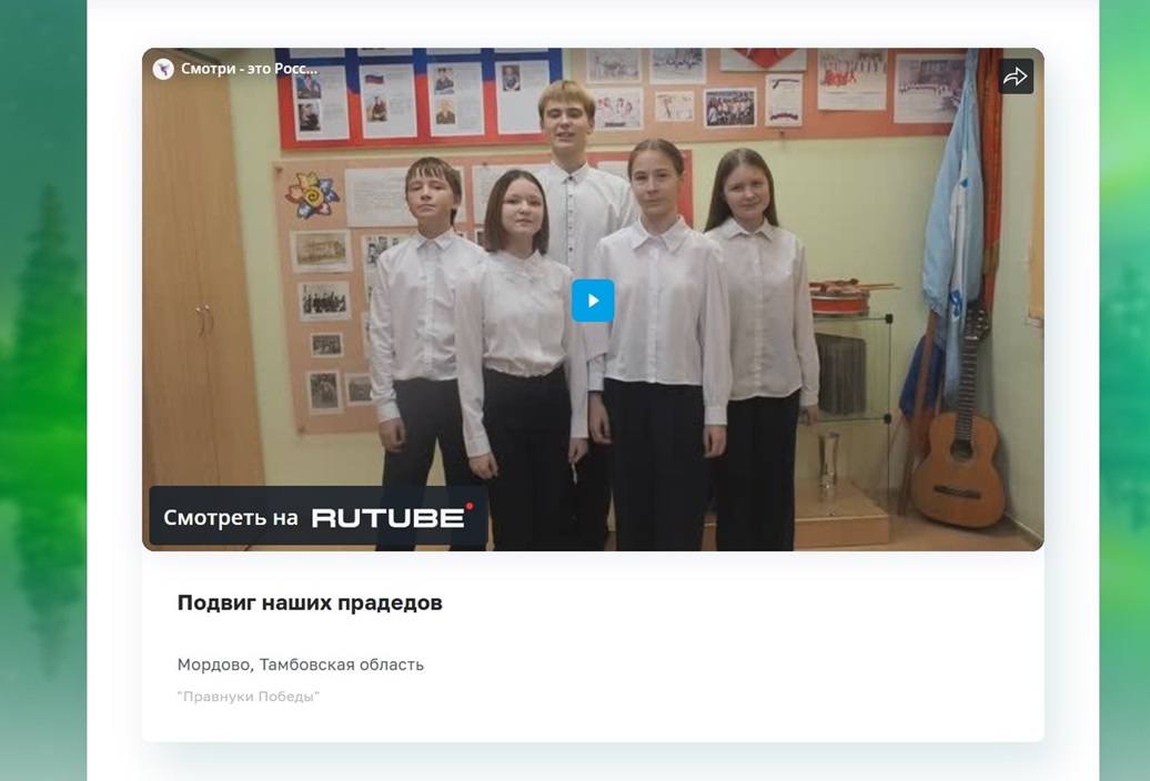 Команда учащихся МБУ ДО «Мордовский Дом детского творчества» «Правнуки Победы» приняла участие во Всероссийском конкурсе видеороликов «Смотри, это Россия!».