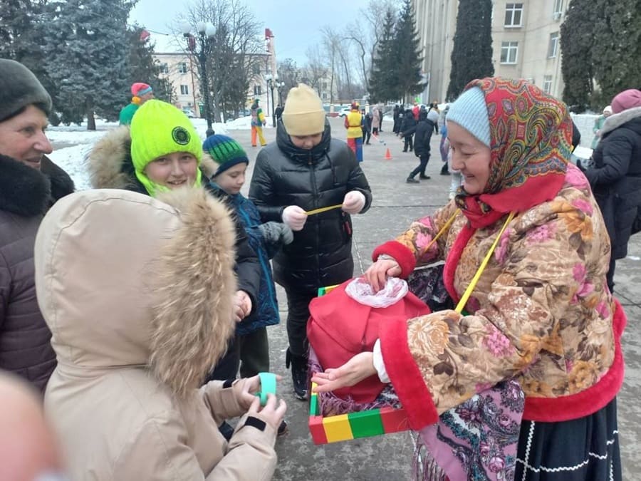 Праздник начался на площадке перед зданием, где звучала музыка, костюмированные герои и ярмарочные персонажи играли с детьми и взрослыми в русские народные игры: «растяпа», «горелки», «шалыга», «клюшкование», перетягивание каната, а коробейники поздравляли и дарили открытки с пожеланиями жителям города. «Веселись, честной народ! Масленичная ярмарка всех нас ждет!», — зазывала жителей города ведущая и рассказывала о традициях праздника.