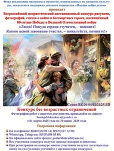 Фонд «Подари добро детям» запускает Всероссийский дистанционный конкурс, посвященный 80-летию Победы в Великой Отечественной войне.