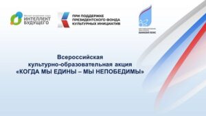 Всероссийская культурно-образовательная акция «Когда мы едины – мы непобедимы» проводится общероссийской детской общественной организацией «Малая академия наук «Интеллект будущего» и некоммерческим партнерством Центр развития образования, науки и культуры «Обнинский полис».