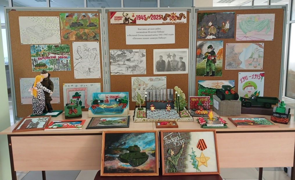 В номинациях «Память в сердце храня», «Непобедимая и легендарная…» и «Подвигу жить в веках» дети представили работы по изобразительному и декоративно-прикладному творчеству.