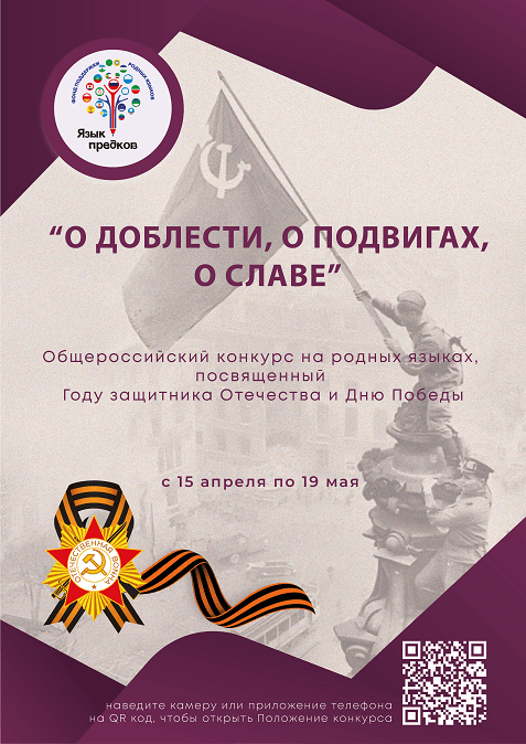 С 15 апреля по 19 мая 2025 года в России пройдет масштабный творческий конкурс, посвященный Году защитника Отечества и Дню Победы. Организатором выступает Фонд поддержки родных языков «Язык предков» при поддержке Министерств культуры, образования и национальной политики субъектов РФ.