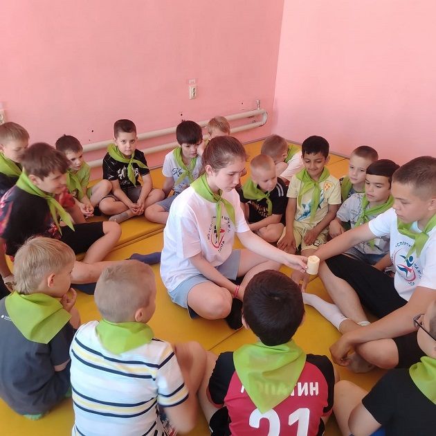 После завтрака дети отправились на «Поезде Победы» в военное прошлое пройдя квест-игру, узнали лучше друг друга на «Огоньке знакомства», весело провели время на игровом часе «Играю я – играют мои друзья».