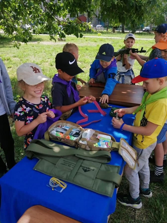 Сегодня в гостях у лагеря «Ратибор» был преподаватель по ОБЗР МАОУ «Цнинская СОШ № 2» Тимакин Андрей Михайлович с познавательным мастер-классом «Ознакомление с основными средствами вооружения и защиты военнослужащих». В рамках беседы было рассмотрено назначение и боевые свойства стрелкового оружия, основы оказания первой помощи на поле боя, в чём заключается воинская деятельность, ребята ознакомились с элементами военного снаряжения.