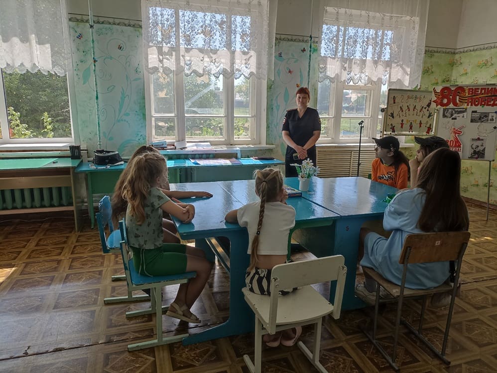 10 июля 2025 года к воспитанникам ЛДП «Дружный» в гости приходила инспектор подразделения по делам несовершеннолетних Безделина Татьяна Васильевна, которая рассказала о действиях при угрозе БПЛА.
