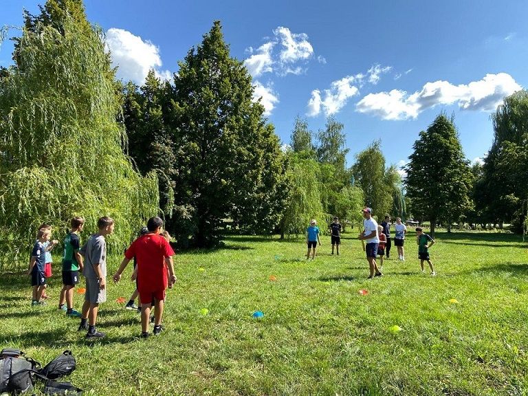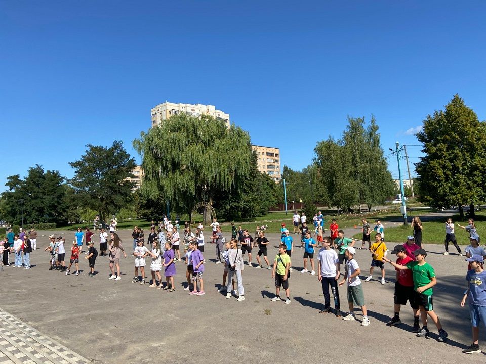 Под зажигательную музыку ребята повторяли движения за тренерами, зарядились энергией и хорошим настроением. Спортивное мероприятие дополнили площадки с дворовыми играми: «Лапта», «Городки», «Резиночки» и «Классики».