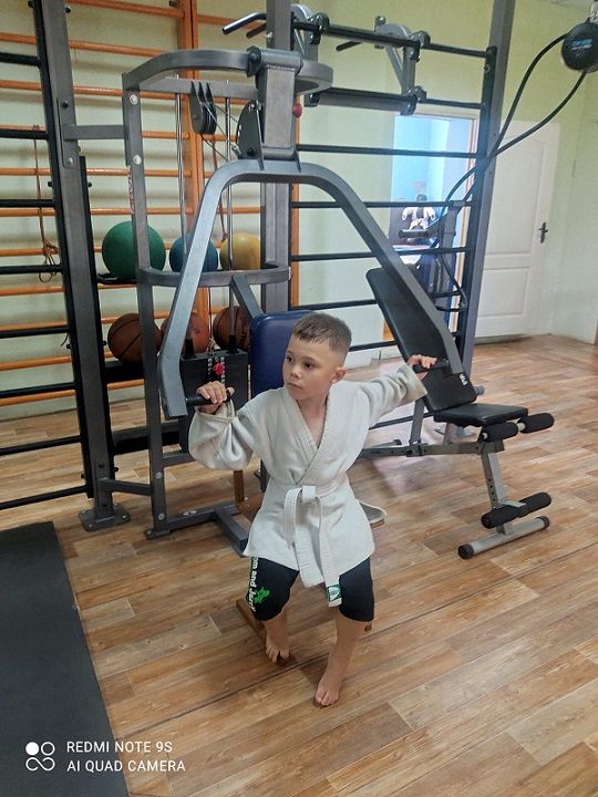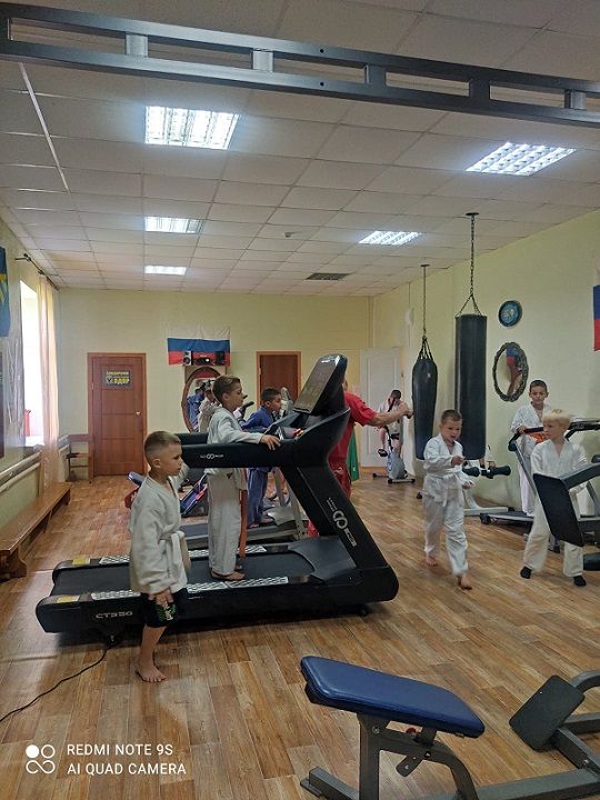 Накануне праздника в Бондарском Доме детского творчества педагог дополнительного образования В.Н. Валишвили провел с ребятами зарядку и занятия на тренажерах. Четкие команды тренера выполнялись слаженно и правильно, упражнения демонстрировали ловкость, силу и выносливость.