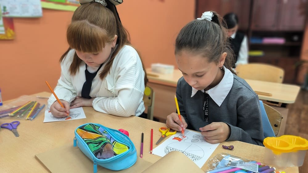 Под руководством своего педагога Денисовой Е.С. дети не только приступили к творческому процессу, но и поговорили про золотую осеннюю пору, вспомнили красоту леса осенью, обсудили возможную цветовую гамму будущей поделки. Дружелюбная атмосфера мастер-класса вдохновила ребят на работу, а грамотное и понятное объяснение педагога дали потрясающий результат. В руках каждого школьника появился милый лисенок среди осенних ярких листьев.