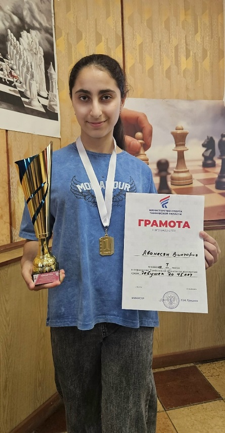 С 23 по 26 сентября в Тамбове проходило Первенство Тамбовской области по шахматам и наш округ представили обучающиеся Жердевского Дома детского творчества Аванесян Виктория, Вахромин Сергей и Солодина Анна. По результатам 4 дней Виктория Аванесян одержала победу и подтвердила титул Чемпионки области по шахматам среди девушек до 15 лет. Поздравляем Вику и ее тренера Волчихина Артема Михайловича с заслуженной наградой! Вика, мы в тебя верили!!!