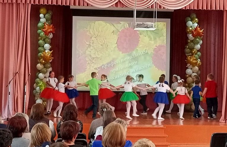 Обучающиеся Токаревского Дома детского творчества приняли участие в концертной программе: красивый танец подарил педагогам танцевальный коллектив «Настроение», Лера Искеева спела песню «Учителя».