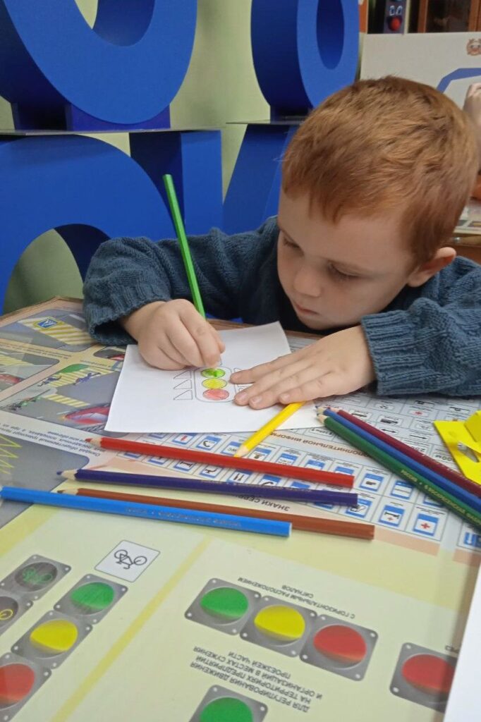 В игровой форме ребята повторили правила перехода по пешеходному переходу. Выяснили, как при помощи светофора сделать это безопасно. С интересом посмотрели мультфильм по правилам дорожного движения и раскрасили сигналы светофора.