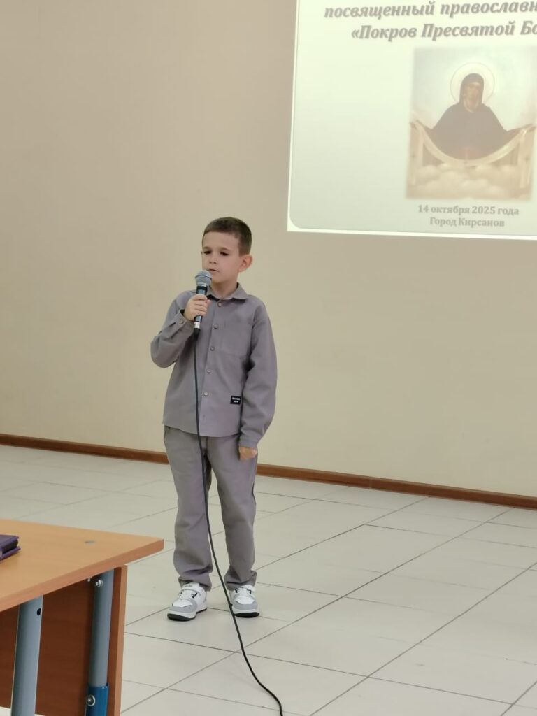 В рамках национального проекта «Молодежь и дети», направленного на развитие талантов каждого человека, 14 октября на базе духовно-просветительского центра г. Кирсанова «Возрождение» состоялся традиционный конкурс чтецов, посвященный православному празднику Покрова Пресвятой Богородицы, в котором приняли участие обучающиеся школы раннего развития «Росток» Центра детского творчества. Участники выступали в нескольких возрастных категориях и в каждой были определены победители.