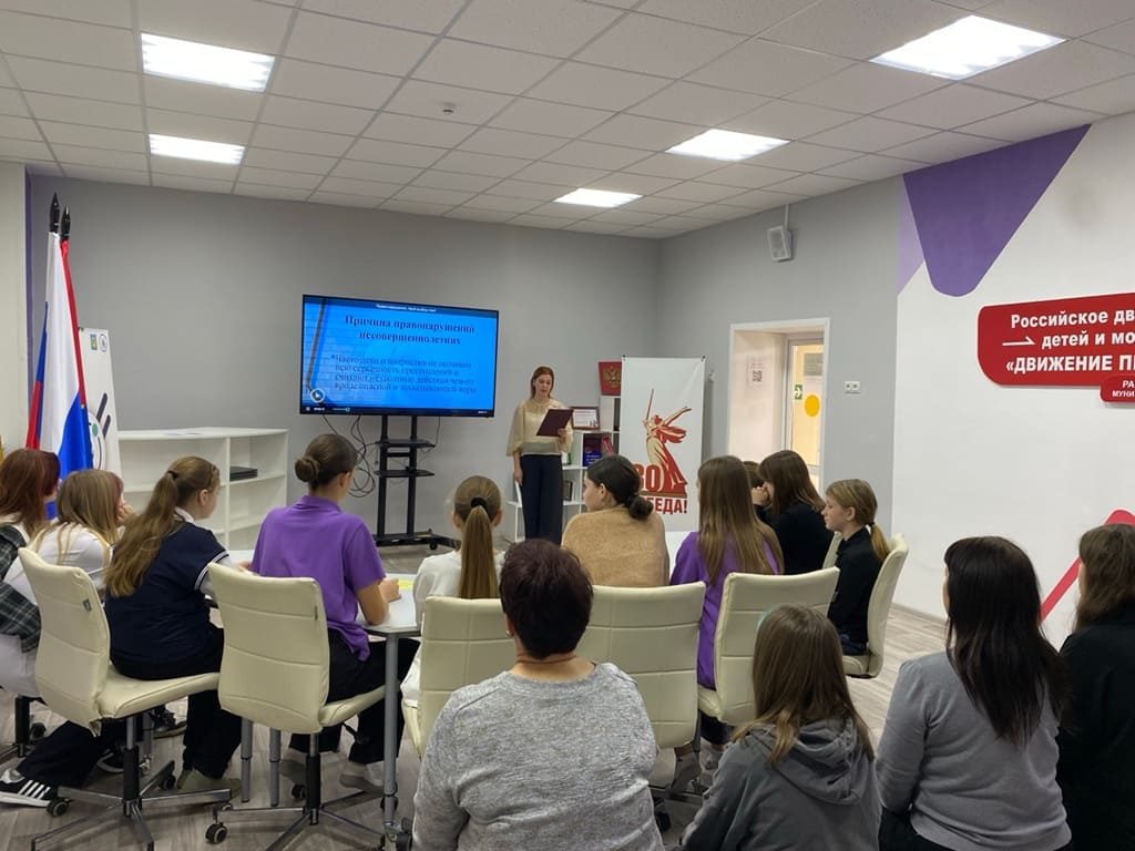 В начале беседы было дано определение понятия «правонарушение». Харитонова М.С. подробно разобрала с учащимися причины, толкающие людей на совершение преступлений, акцентируя внимание на негативных последствиях для личности и общества. Особое внимание было уделено видам юридической ответственности, с которыми могут столкнуться несовершеннолетние правонарушители, – административной и уголовной.