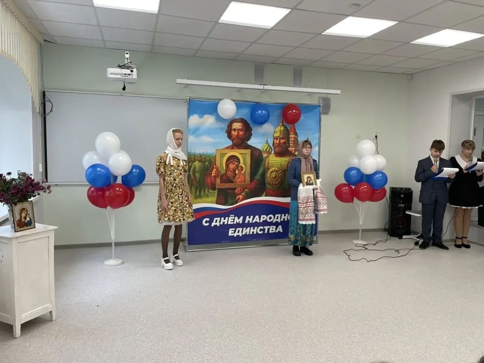 Обучающиеся и педагоги подготовили патриотическое мероприятие, в рамках которого рассказали об истории смутного времени, об избавлении России от польской интервенции, о чудотворной иконе Божией Матери «Казанская».