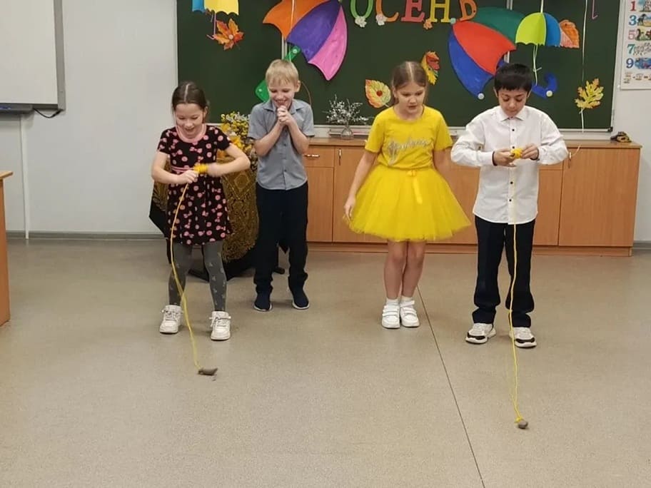 После спектакля началась пора веселых конкурсов и игр. Ребята с азартом собирали «урожай» на скорость, отгадывали осенние загадки, участвовали в «калошной эстафете» и даже пытались поймать мышек, изобразить шум осеннего ветра. Атмосфера была заряжена позитивом.