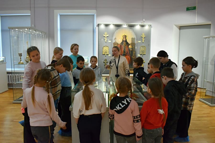 Ребятам удалось побывать на тематической экскурсии по православию. Коллекция православного искусства была сформирована в 1920–30-е годы основателем музея Петром Ивановым. В рамках экспозиции представлены иконопись, деревянная скульптура, в том числе статуи из сельских церквей Моршанского уезда Тамбовской губернии, самые древние из которых вырезаны в XVII веке.