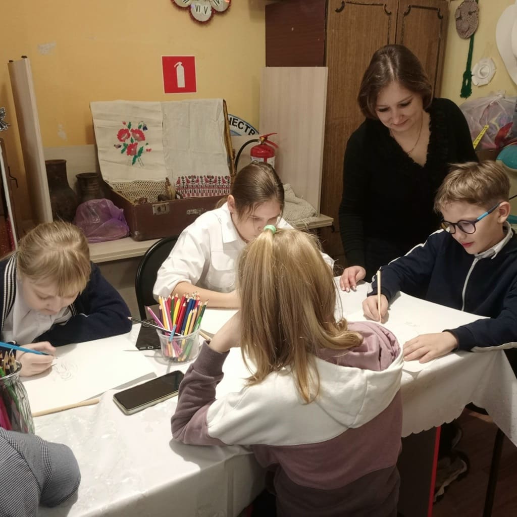 Директор МБОУ ДО «Дом детского творчества им. М.П. Кириллова» Новичкова Мария Викторовна совместно с методистом Борькиной Марией Валентиновной традиционно рисовали ангела с обучающимися Ржаксинских школ.