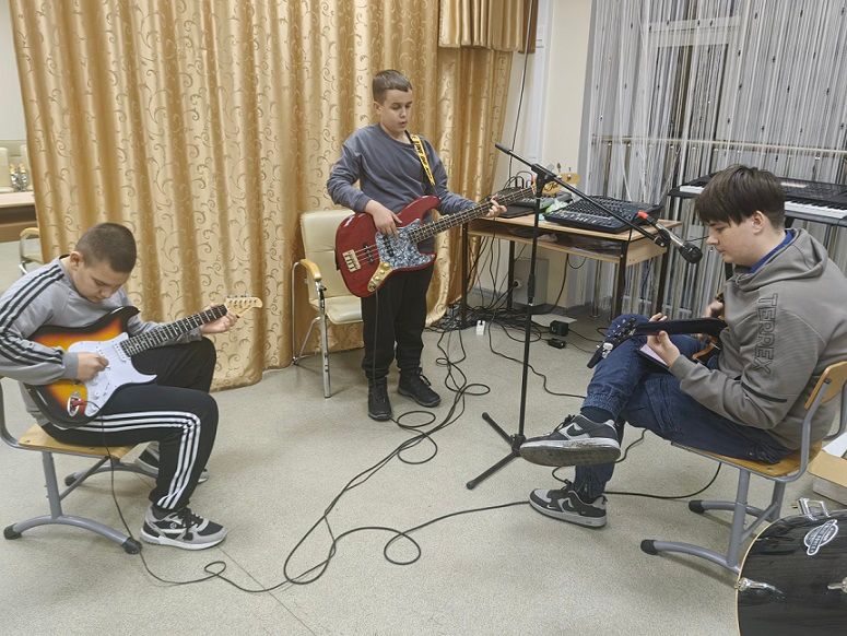 Под руководством педагога дополнительного образования Сергея Арцыбашева занятия ведутся по различным музыкальным инструментам: клавиши, соло-гитара, ритм-гитара, бас-гитара, ударный инструмент.