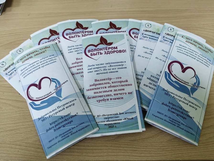 Обучающиеся творческого объединения «Юный журналист» Петровского Дома детского творчества представили на V муниципальном слёте волонтёров свою первую практическую печатную работу – буклет.