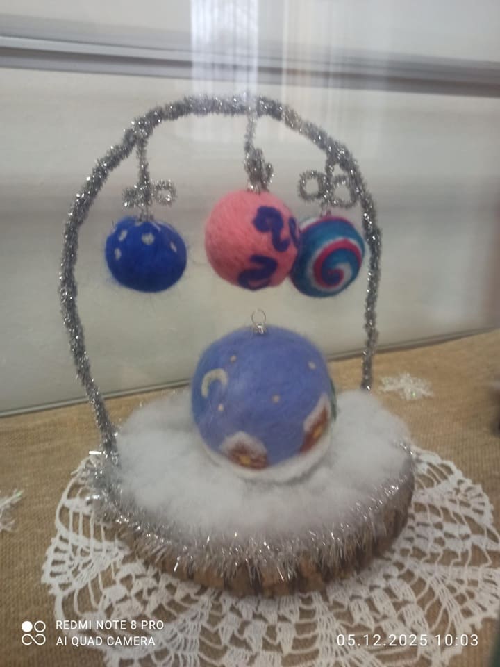 Экспозицию выставки составляют многочисленные работы детей дополнительного образования нашей области, занимающихся в детских объединениях художественной направленности. Здесь поделки из таких материалов, как цветная бумага, вата, пайетки, бисер, пластилин, мишура. А также из природных материалов, таких как шишки, желуди, елочные веточки. Руками детей изображены новогодние чудеса, доброта и волшебство, символы наступающего Нового года, снежинки, снеговики, заснеженные домики. Среди детских работ, представленных на выставке, есть работы обучающихся и педагогов дополнительного образования Бондарского Дома детского творчества Веры Федулеевой и Татьяны Аппоротовой.