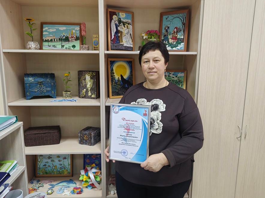 Педагог дополнительного образования Петровского Дома детского творчества Марина Владимировна Козлова, успешно преодолев три отборочных этапа, заняла призовое III место в номинации «Мастерство без границ» (декоративно-прикладное творчество).
