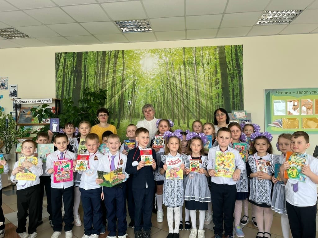 Окончив изучение азбуки, первоклассники пришли в библиотеку, чтобы их записали в читатели и они смогли выбрать свои первые библиотечные книги.