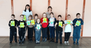 Затем учащиеся приступили к практической работе по изготовлению подснежников из бумаги. Они поражают своей неповторимостью и яркостью. На желтом фоне листа бумаги расцвели хрупкие и скромные первоцветы, бережно и старательно вырезанные из цветной бумаги и с помощью клея расположенные на середине листа в виде букетика.