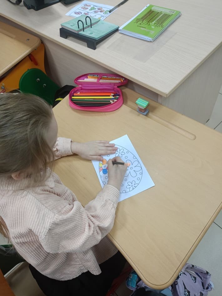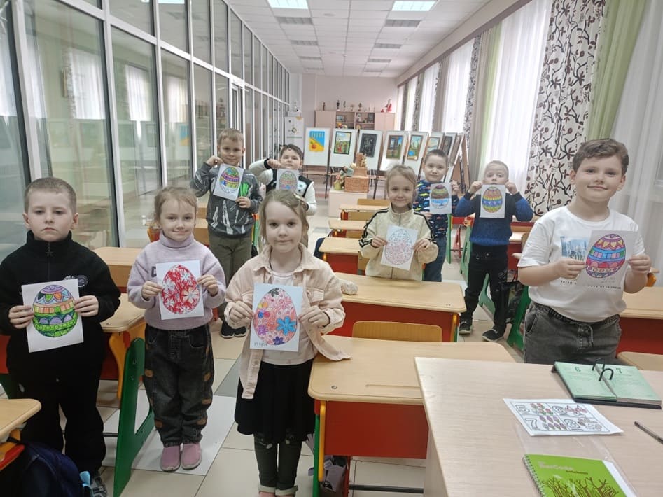 Погрузившись в атмосферу творчества, малыши увлечённо раскрашивали эскизы пасхальных яиц, и в результате у каждого получился неповторимый рисунок, который можно преподнести в качестве подарка или использовать для украшения дома.