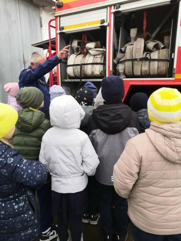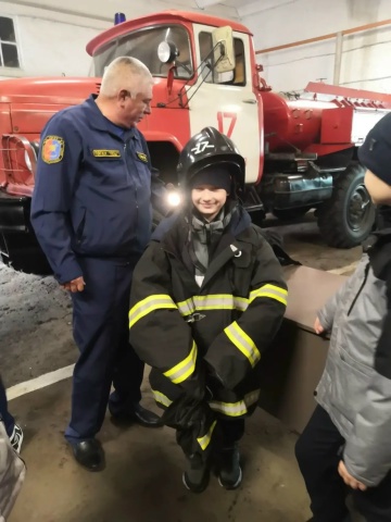В пожарной части ребятам показали караульные помещения, дежурно-диспетчерскую службу. Зрелищное действие произошло в гараже боевых машин. Начальник пожарной части №17 Коньков Н.В. показал ребятам предметы боевой одежды, пожарно-спасательное оборудование. Ребятам рассказали об имеющихся в распоряжении пожарной части пожарных машинах, что с ними связано, как они работают, чем оборудованы.