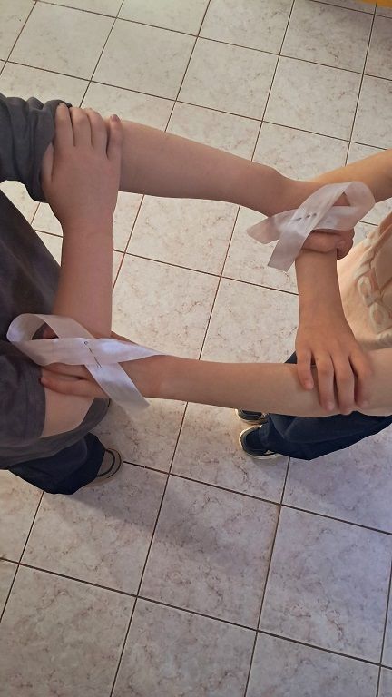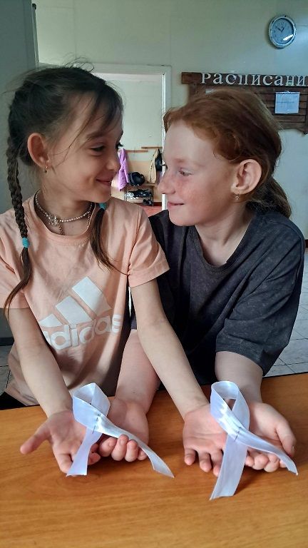 Вместе с ребятами мы говорили о том, почему важно быть внимательными друг к другу, уважать разные народы и традиции, и почему жестокость не имеет оправдания. Белая ленточка – это символ мирной гражданской жизни, чистого сердца и борьбы с насилием.