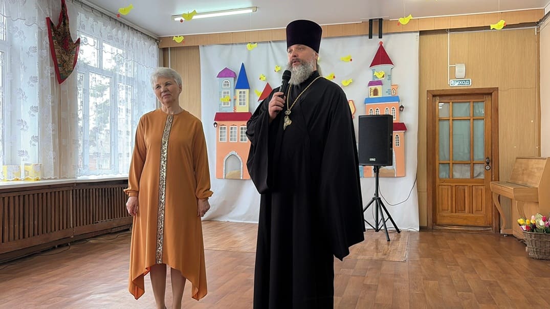 Мероприятие проходило по благословению настоятеля Благовещенского храма священника Иоанна Масягина, который обратился к присутствующим с пасхальным приветствием и вручил детям и руководителям сладкие подарки.