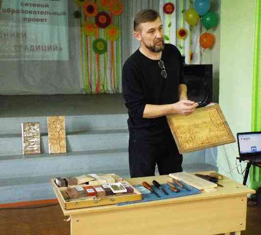 В рамках работы программы «Школ мастеров и декоративно-прикладного творчества» для ребят прошёл мастер-класс «Резьба по дереву», который провёл педагог дополнительного образования Сокольнивской СОШ — А. И. Ургапов. Он рассказал школьникам о видах древесины, о влияние её свойств, на технику выполнения работ, об инструментах, которыми пользуется мастер и продемонстрировал ребятам различные техники резьбы по дереву. На мастер-классах школьники смогли попробовать свои силы в данной деятельности и вырезать собственный орнамент .