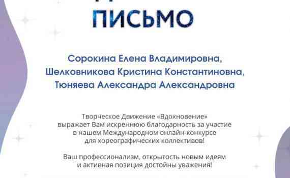 Подведены итоги X Международного онлайн-конкурса для хореографических коллективов «Вдохновение». Всего было подано 2955 заявок. В конкурсе принимали участие коллективы из 13 стран: Германии, Китая, Эстонии, […]