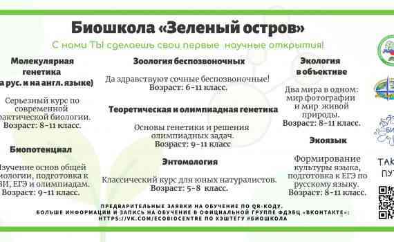 Федеральный детский эколого-биологический центр объявляет набор обучающихся в Биошколу «Зелёный остров» по — дополнительным общеобразовательным программам: — Биопотенциал; — Экоязык. Приглашаются все школьники России с […]