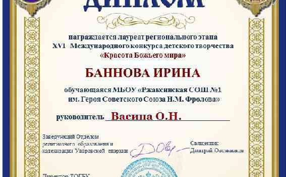 Учащаяся филиале МБОУ «Ржаксинская СОШ № 1 им. Н.М.Фролова» в с. Лукино Баннова Ирина была удостоена Диплома и стала лауреатом 16 Международного конкурса детского творчества […]
